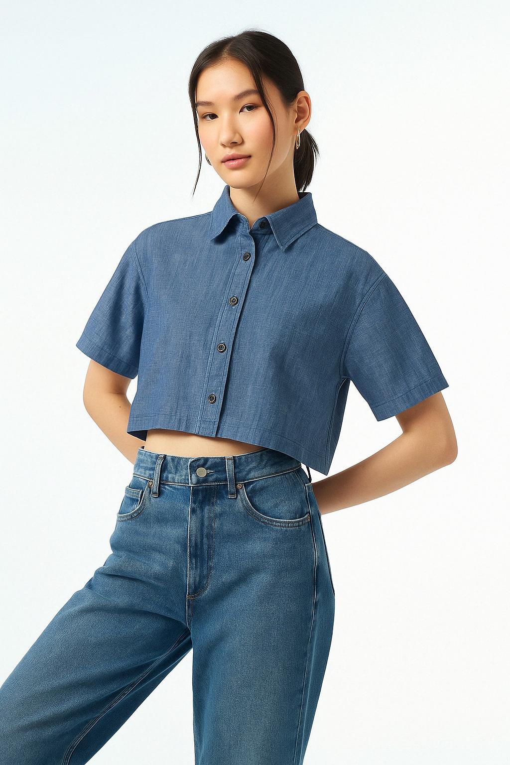 [16911] HnM Denim Oversized Crop ms